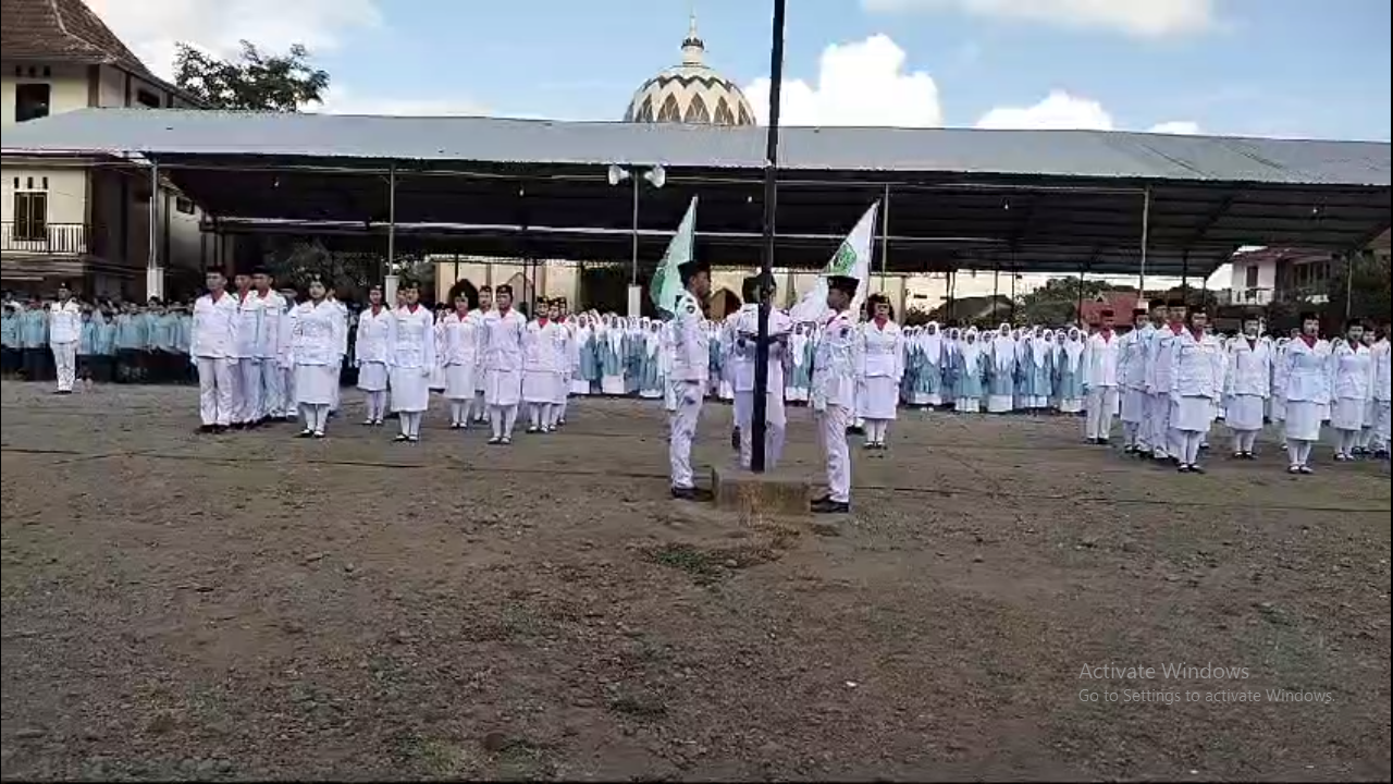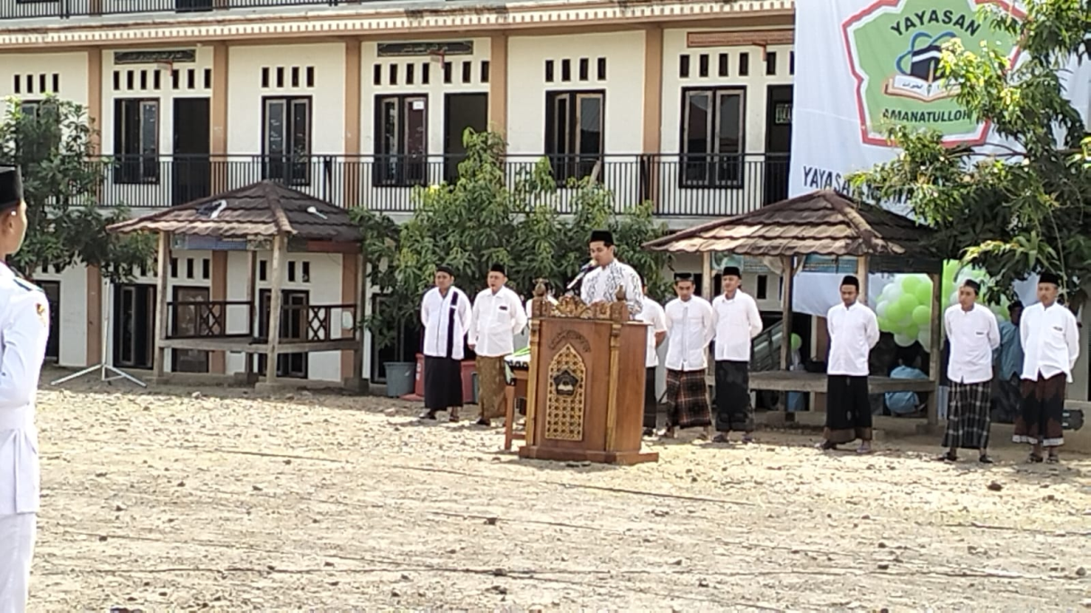 Meskipun cuaca terik menyelimuti lapangan, semangat para santri tidak surut. Mereka mengikuti setiap prosesi dengan penuh disiplin dan perhatian. Kegiatan ini juga dihadiri oleh Kabid Dikjar SMP dan MA Amanatulloh, Bapak H. Amir Mahmud, S.Ag., SP, yang ikut memantau jalannya upacara.